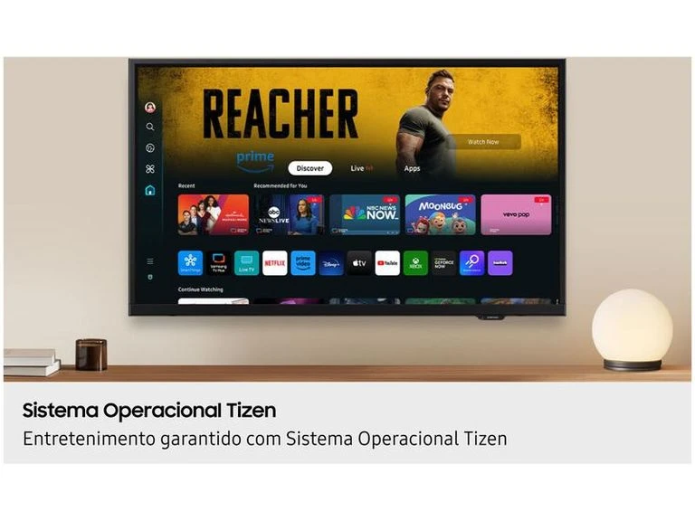 Sistema Operacional Tizen: Entretenimento garantido com Sistema Operacional Tizen. Acesse seus conteúdos e apps de streaming no Sistema Operacional Tizen e tenha uma TV sempre com o que há de mais novo.